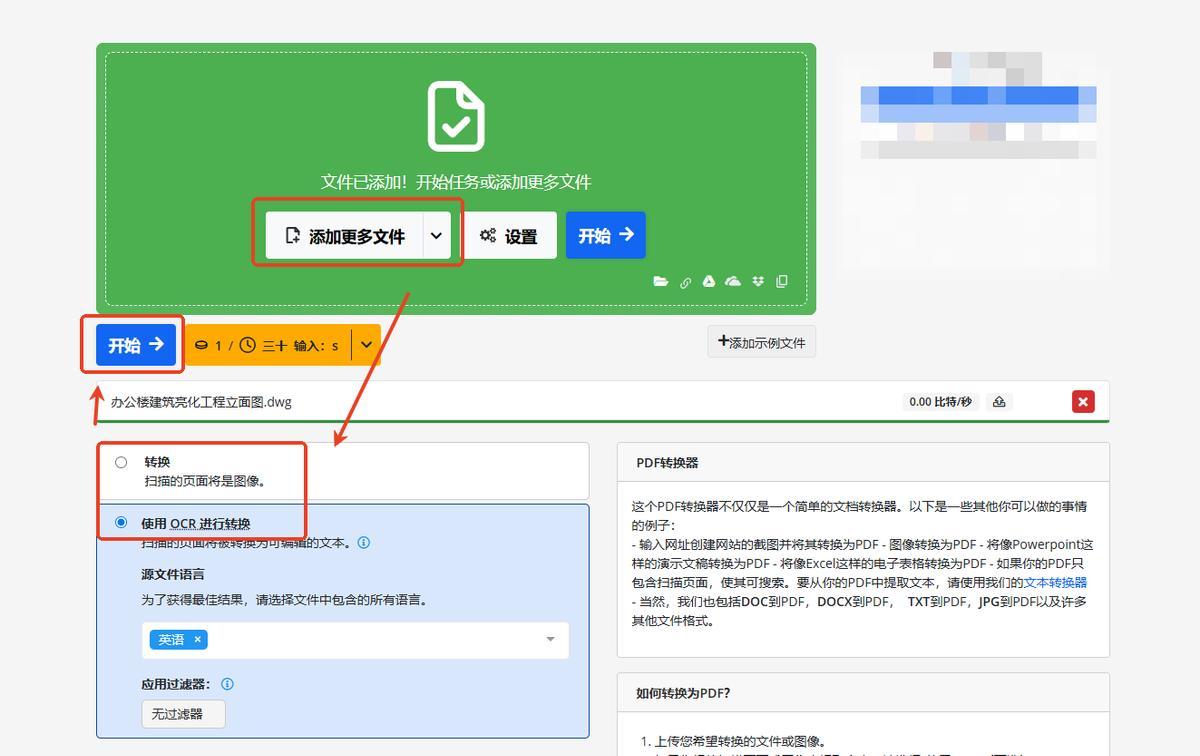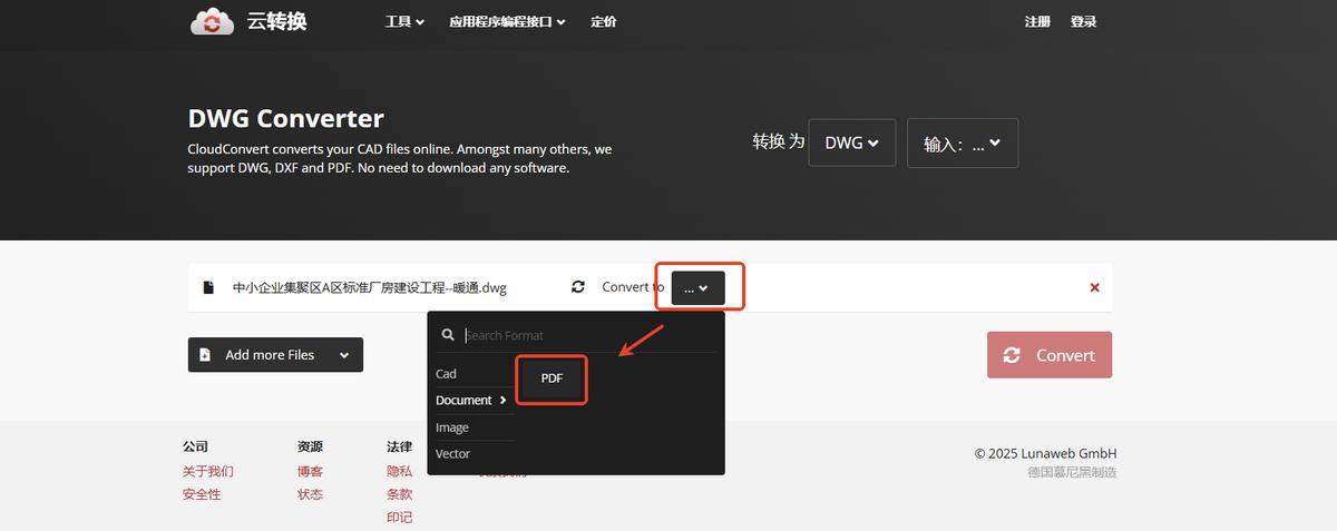 一款國外的在線文件轉換平臺,能夠支持多種常見的CAD格式,可以將導入的CAD文件轉換成PDF格式,只需要導入CAD文件,設置轉換後的文件格式爲PDF,再調整轉換的模式,最後點擊轉換就能將CAD轉換成PDF文件。