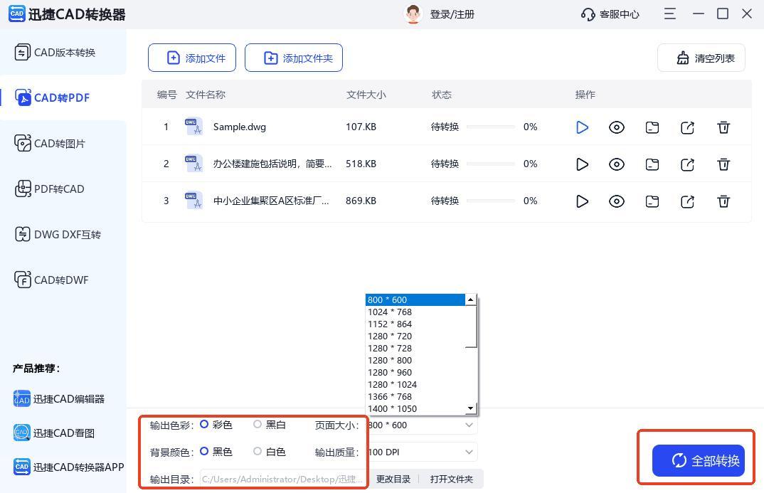 進入軟件,選擇首頁的【CAD轉PDF】,軟件支持批量轉換,可以一次上傳多個CAD文件。