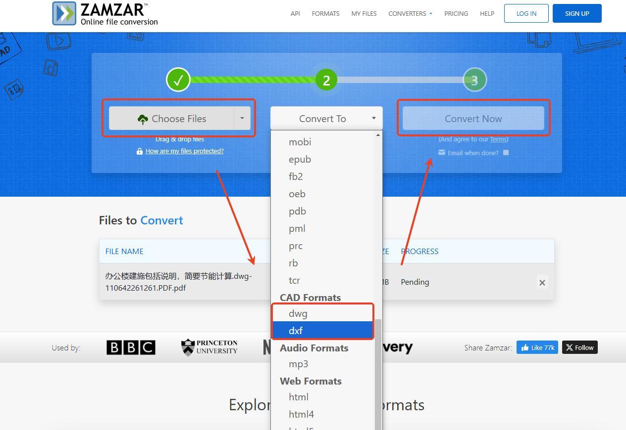 3、通過『Zamzar』把PDF圖紙轉換成CAD圖紙