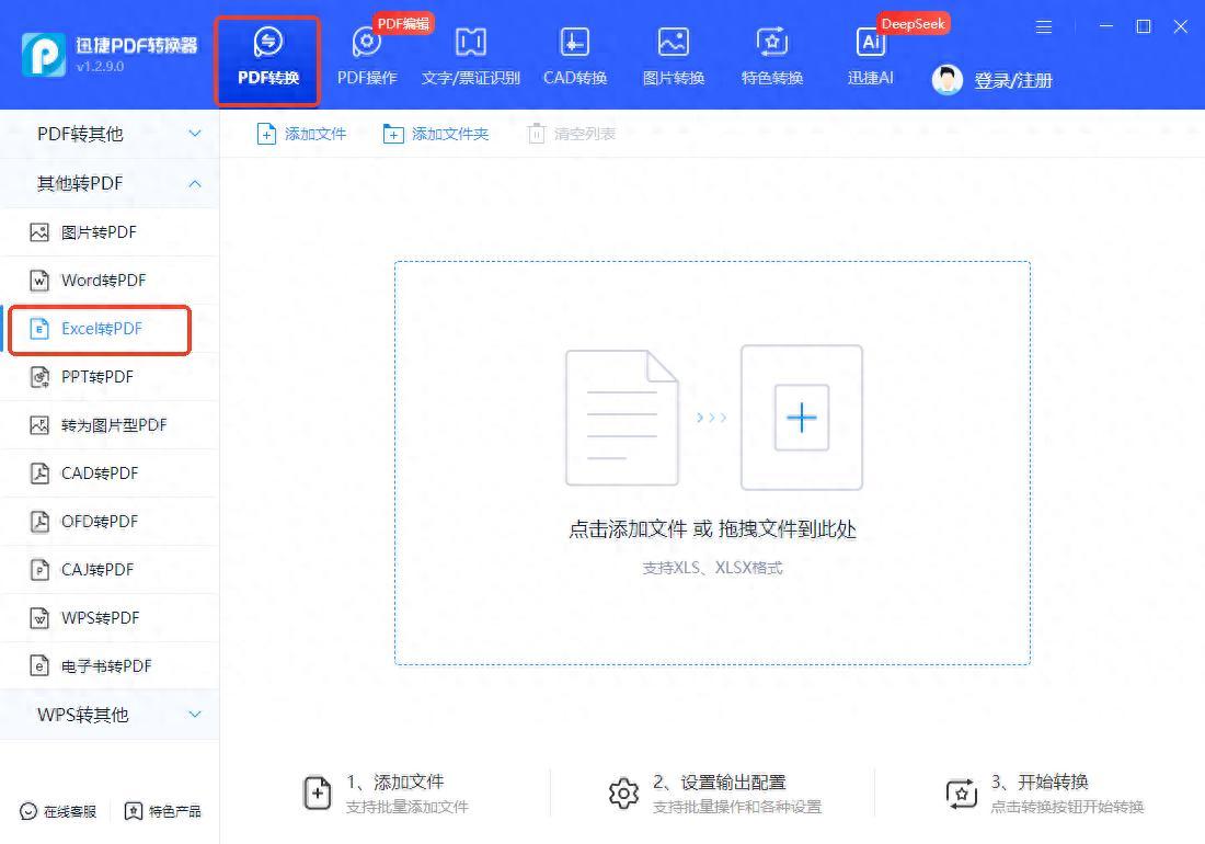 打開軟件,選擇首頁的【PDF轉換】,找到【其他轉PDF】,點擊【Excel轉PDF】功能。