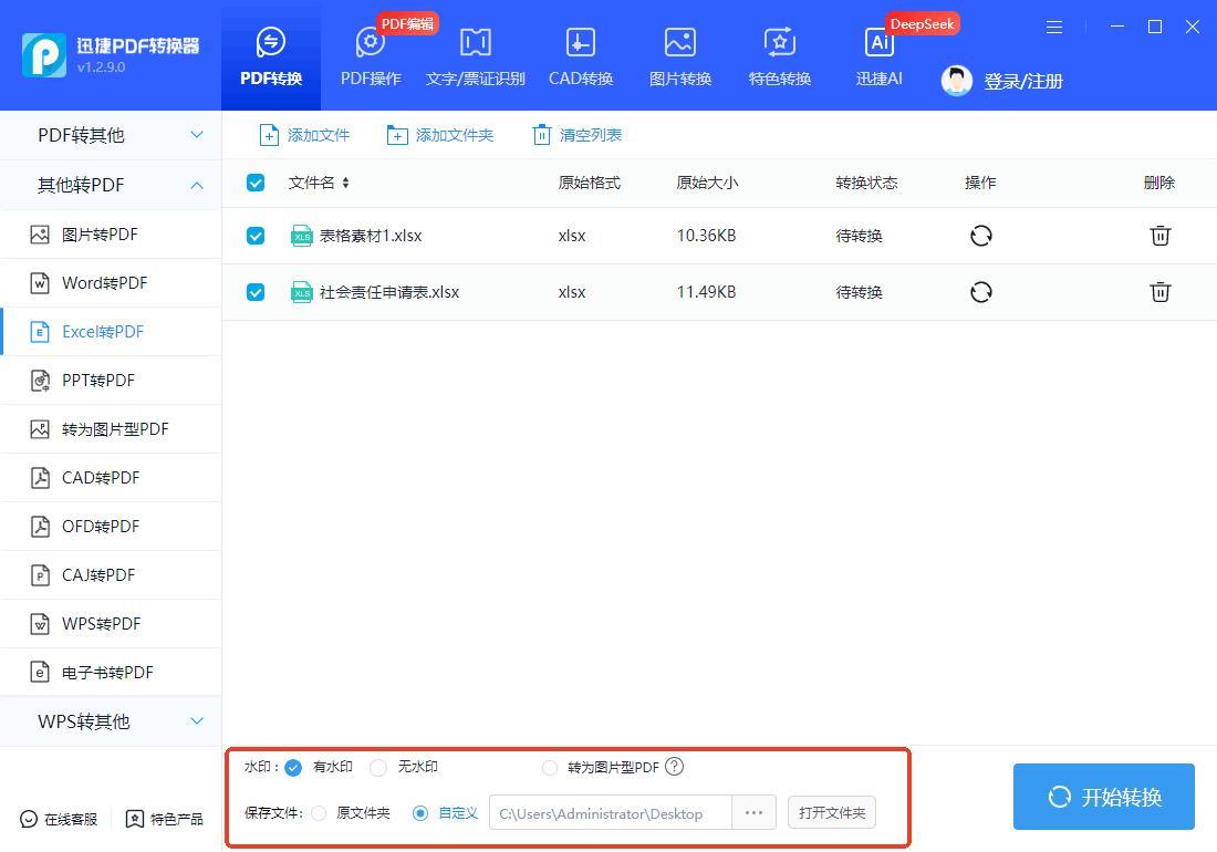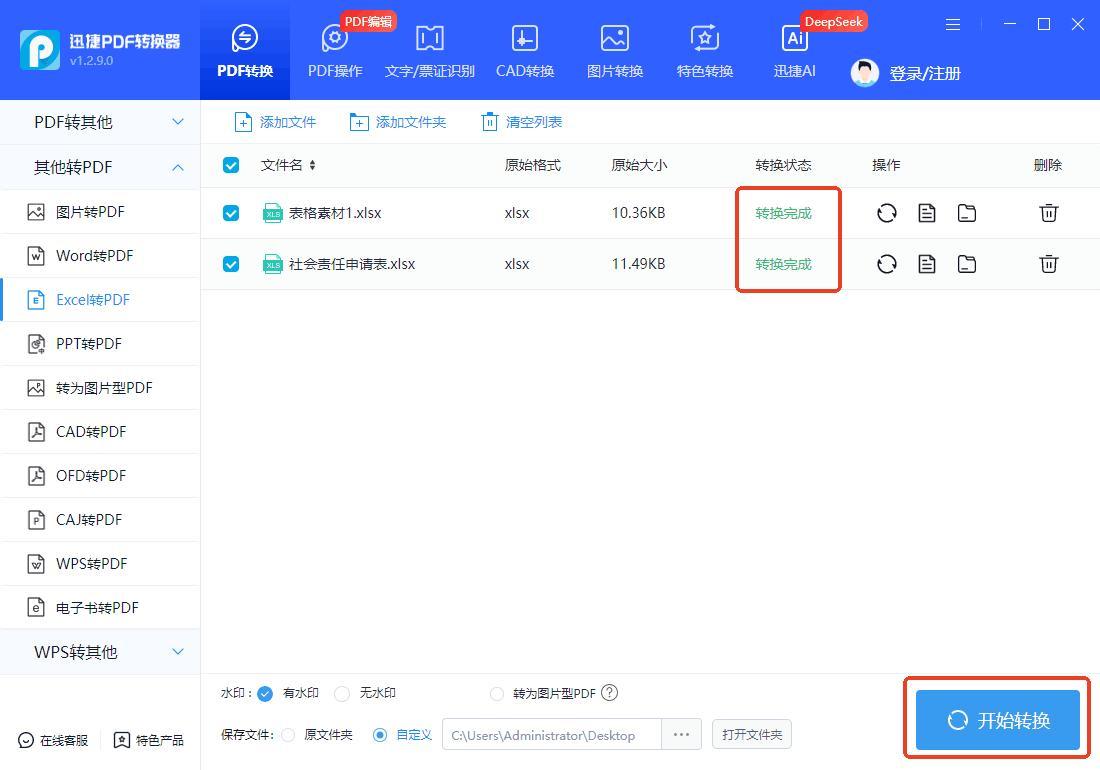 1、通過『迅捷PDF轉換器』把excel轉換成PDF