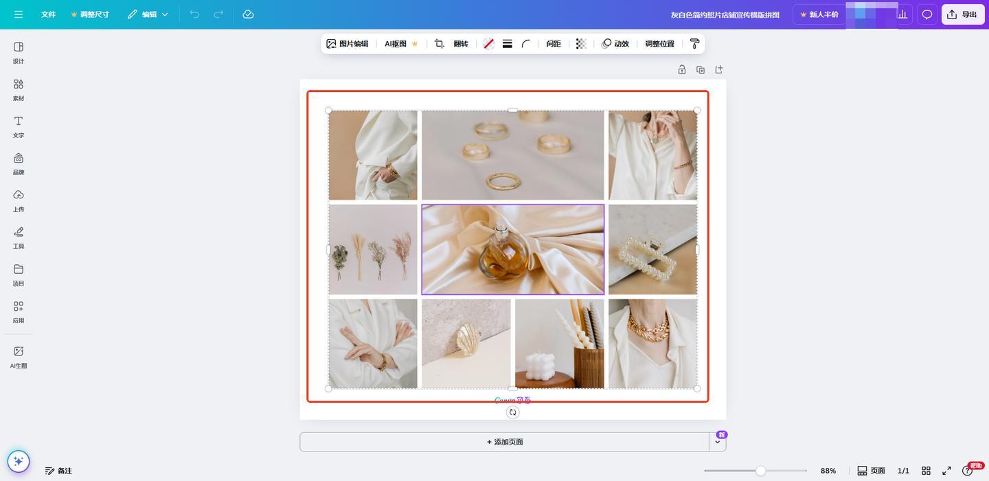 一款在線的圖片設計工具,可以用來將多張圖片拼成一張。在可畫網站的搜索框中輸入“拼圖”,找到一個喜歡的拼圖模板,然後選擇自定義編輯此模板,在圖片編輯界面中,將原本的圖片刪除,上傳自己的圖片,稍微調整一下位置和參數,就能將拼好的圖片保存下來。