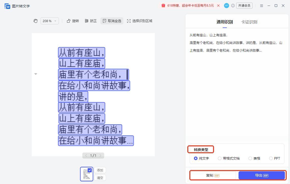 WPS不僅可以創建文檔,也可以識別圖片文字,操作也不難,打開圖片後在工具箱中找到【圖片轉文字】功能,可以設置轉換類型和識別類型,軟件會自動識別出圖片中的文字,需要會員才能複製和導出。
