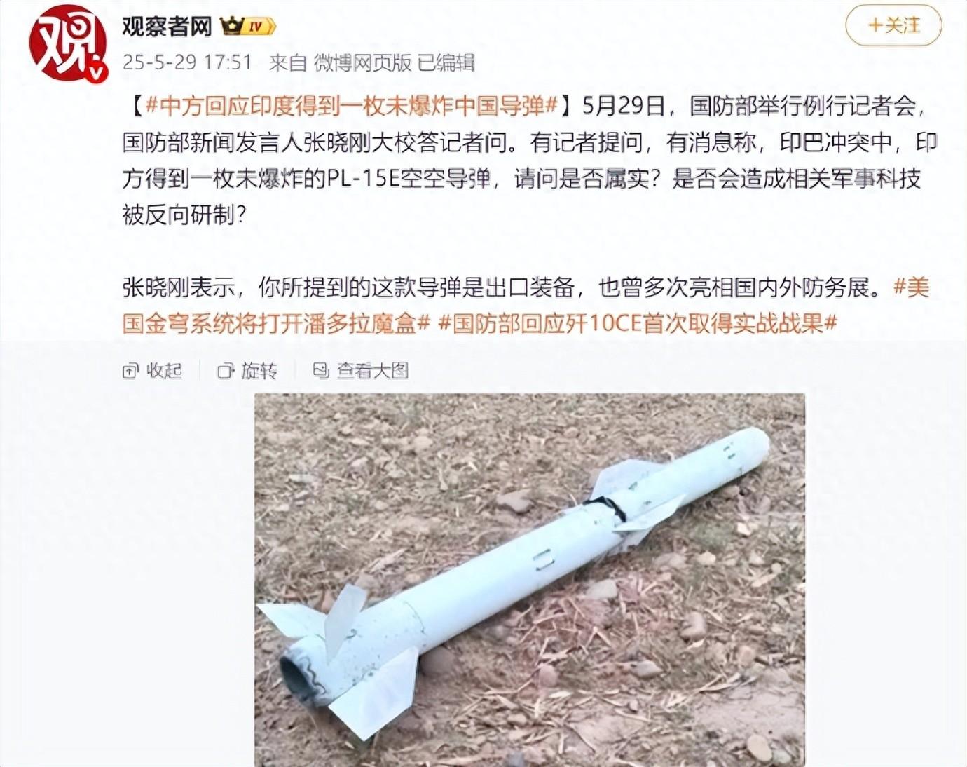 印度也是搞笑,聲稱撿到了未爆的霹靂15E導彈,還表示邀請日本專家一同研究,試圖找到中國導彈的弱點,以及反向研製。