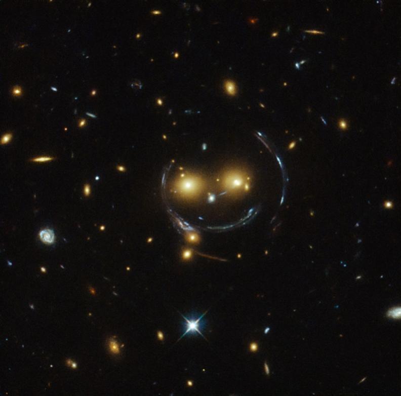 由哈勃望遠鏡拍攝到的引力透鏡(環狀結構,它們就是因引力而發生偏折的光線)