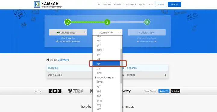 一款老牌的在線文件轉換工具,支持多種格式之間的轉換,包括 PDF 轉 TXT,網站支持將上傳的PDF文檔快速的轉爲TXT格式,一天轉換次數有限,解除轉換次數的話需要開通會員。