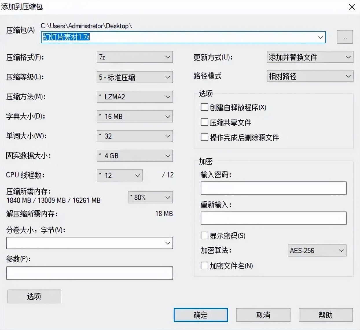 一款開源的壓縮工具,可以用來壓縮PDF、PPT等文件的壓縮需求,能夠快速的將大體積的PPT文件壓縮變小,操作也不難,只需要選中PPT,找到【7-Zip】,選擇壓縮方式、壓縮後名稱、位置等參數即可快速壓縮。