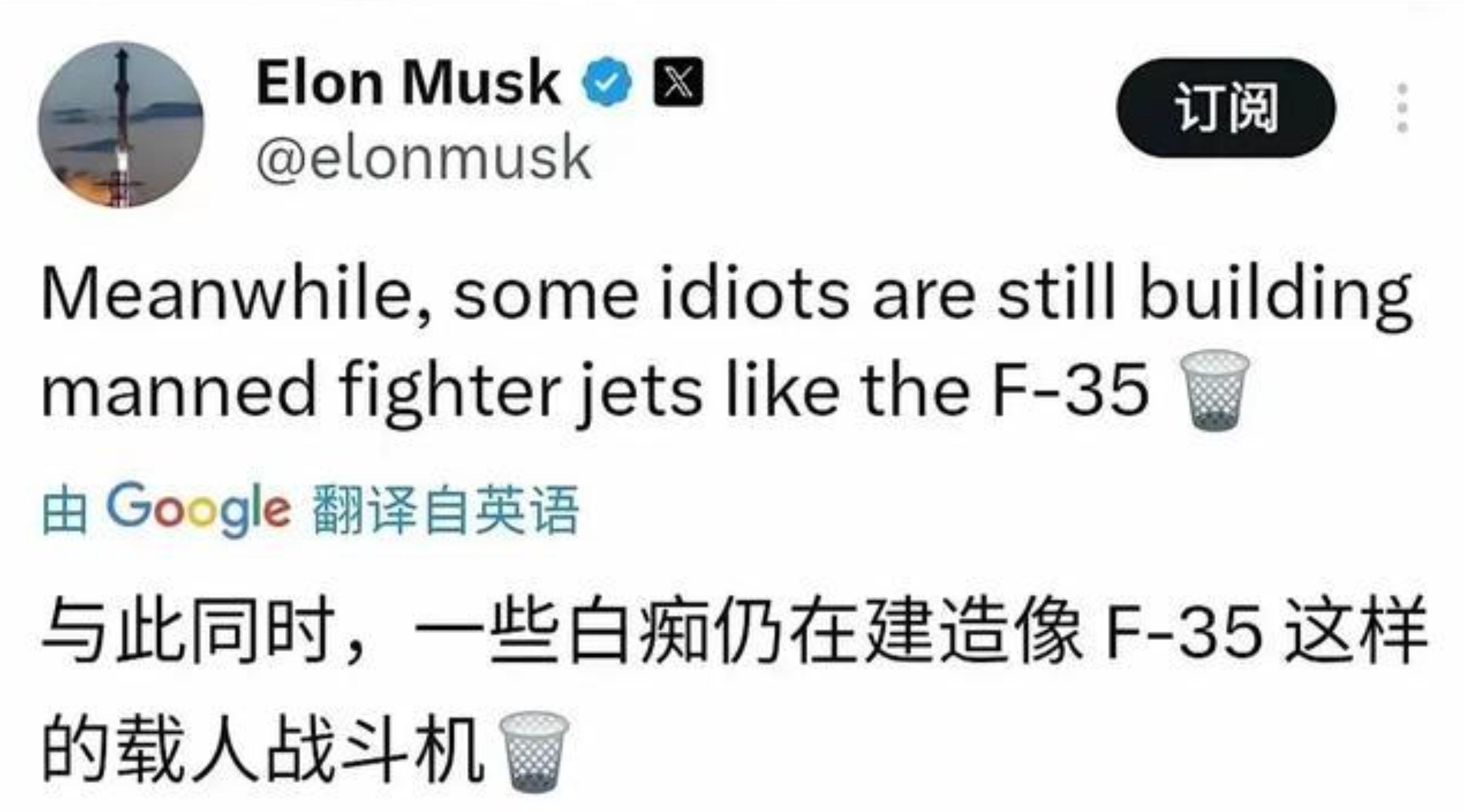 難怪美國“政府效率部部長”馬斯克先生,一直看F35不爽。