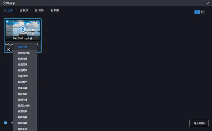●錄製完成之後會自動保存到文件列表中,在這裏可以對視頻進行專業且簡單的剪輯,包括視頻分割、視頻配樂、添加字幕、提取音頻等等,一站式完成錄屏到高質量視頻成品,節省用戶的時間和精力。