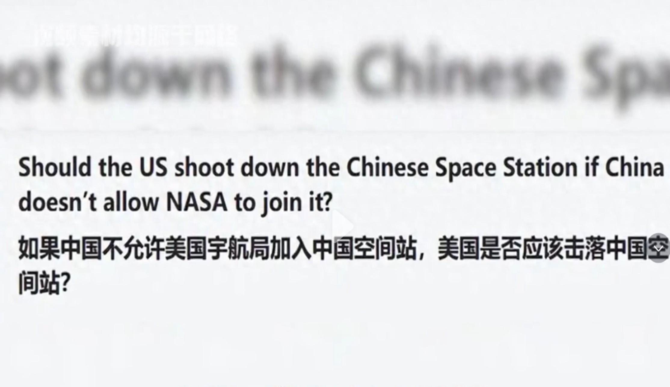 美論壇:如果中國禁止美加入中國空間站,美國有權將其擊落?