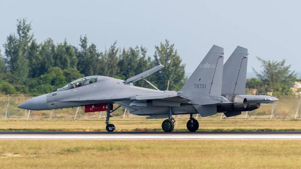 殲15T最狠的升級藏在肚子裏——國產渦扇-10B發動機,單臺推力13.5噸,雙發合力比老款殲15猛了30%。動力上去了,航程也跟着飆:滿油滿彈作戰半徑1200公里,掛上副油箱能衝到1500公里,從東海起飛能覆蓋沖繩全境。