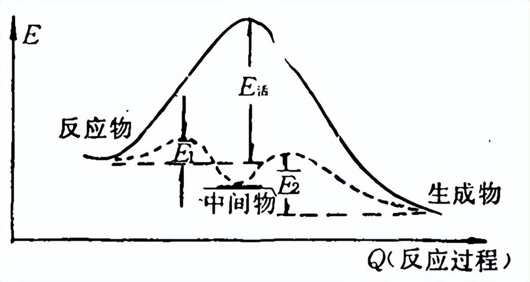 主流理解中酶催化過渡態降低反應活化能原理示意圖