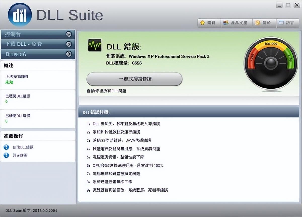 一款專爲Windows系統設計的DLL文件修復工具,可快速解決因DLL文件缺失、系統報錯等問題。軟件擁有一鍵式掃描與修復功能,支持自動檢測並從雲端數據庫匹配正確DLL文件,覆蓋DirectX組件、運行庫等關鍵模塊。