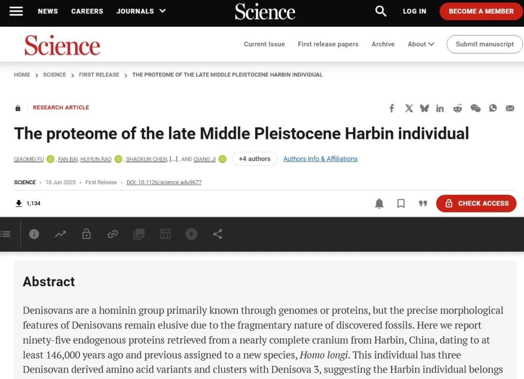 - Fu, Q., Bai, F., Rao, H., et al. (2025). The proteome of the late Middle Pleistocene Harbin individual. Science, doi: 10.1126/science.adu9677.