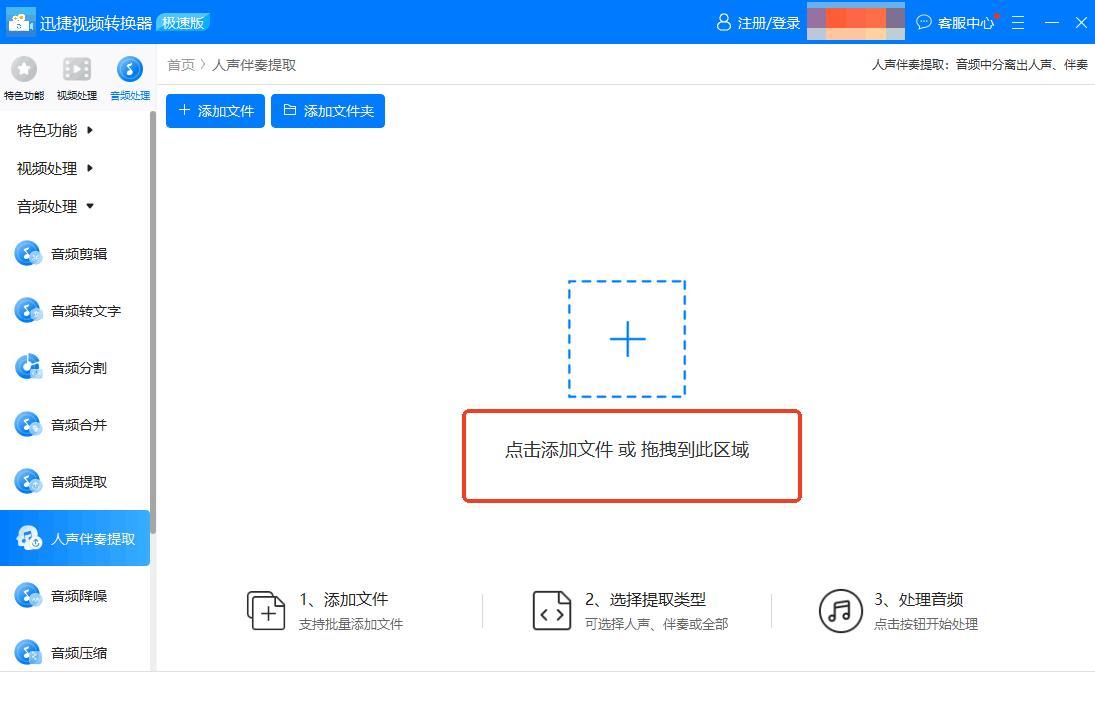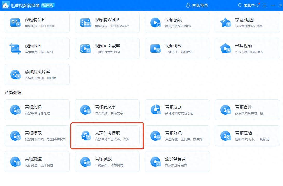 打開軟件,選擇首頁的【人聲伴奏提取】。