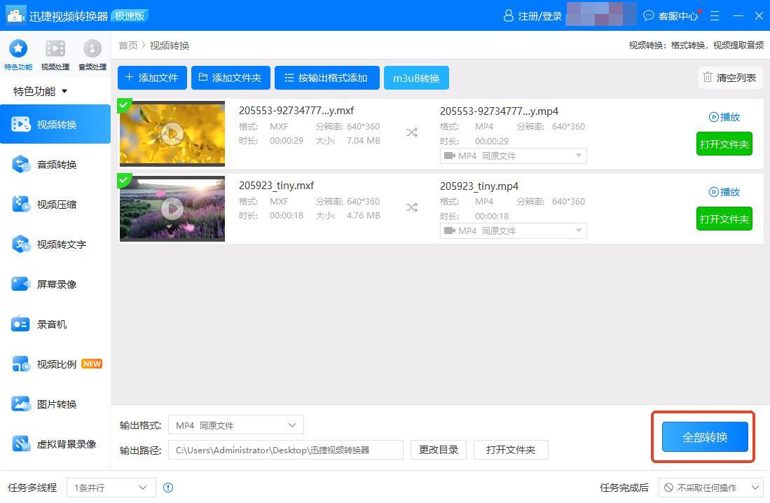 1、通過『迅捷視頻轉換器』將mxf轉爲mp4
