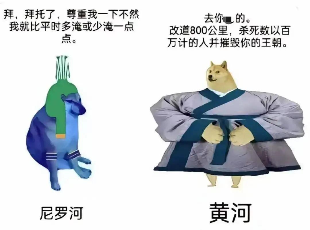 但是中國的母親河——黃河麼,自中華文明有歷史記錄以來,它下游決口氾濫大約1500次,較大規模改道20~30次,大規模改道(河流移位數百公里)6次。