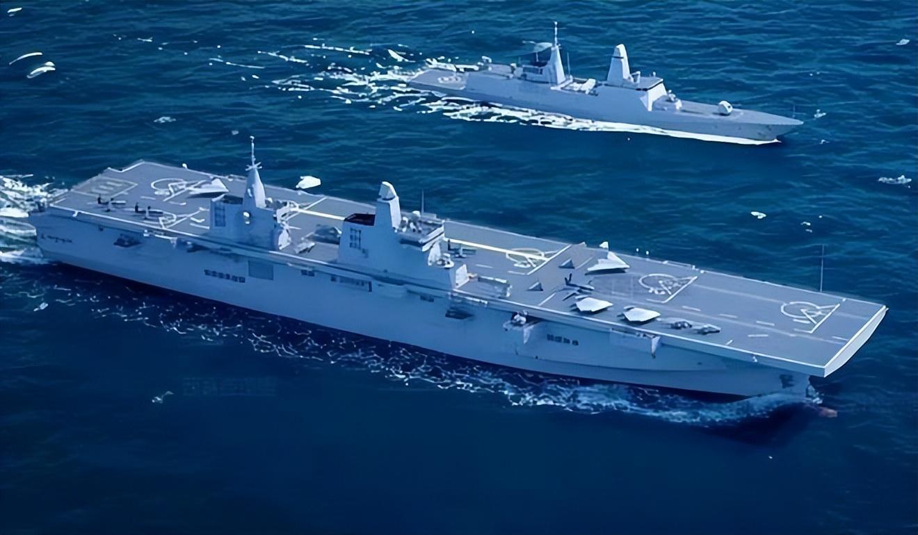 更絕的是設計思路。傳統兩棲攻擊艦像美國的“美國級”,得靠F-35B垂直起降戰機撐場面。但垂直起降有個死穴:腿短!作戰半徑撐死800公里,載彈量還砍半。076直接掀桌子——要啥有人機?無人機不香嗎?
