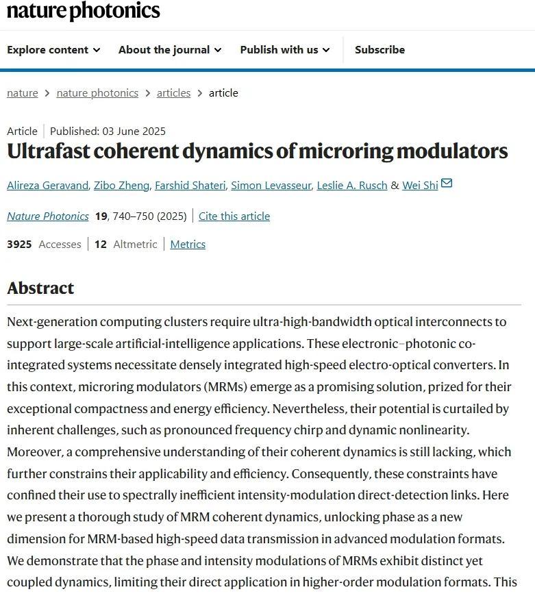 Geravand, A., Zheng, Z., Shateri, F. et al. Ultrafast coherent dynamics of microring modulators. Nature Photonics 19, 740–750 (2025).
