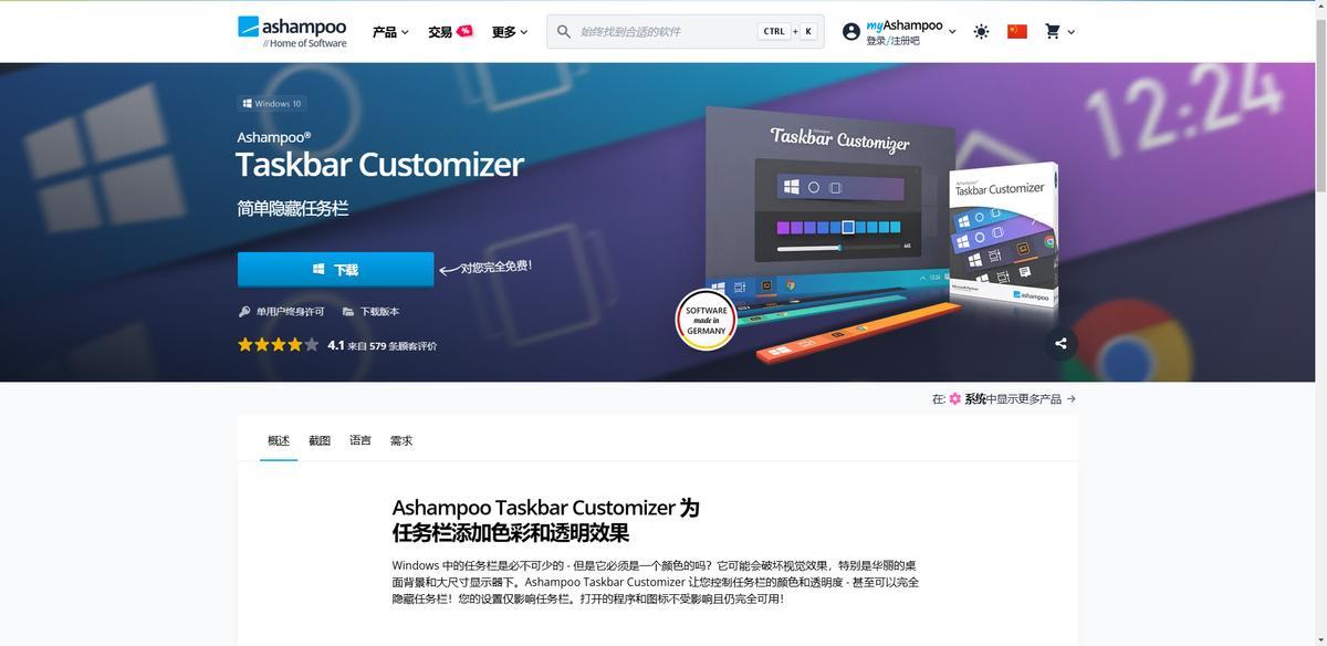 3、通過『Ashampoo Taskbar Customizer』更改Win10任務欄顏色
