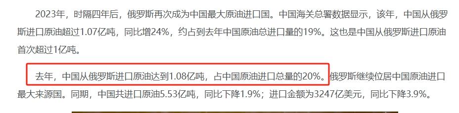 中國是俄油氣最重要的買家,2024年,中國進口俄羅斯原油1.08億噸。俄羅斯還表示,中國需要多少石油,俄羅斯就提供多少。