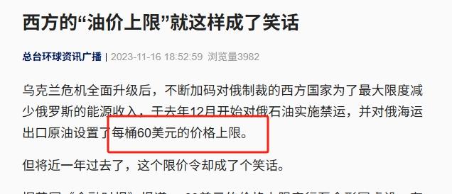 後來發現完全禁運不靠譜,又搞了個限價,每桶最高60美元,否則的話,就要制裁對俄羅斯原油提供保險、技術援助和金融服務的公司。