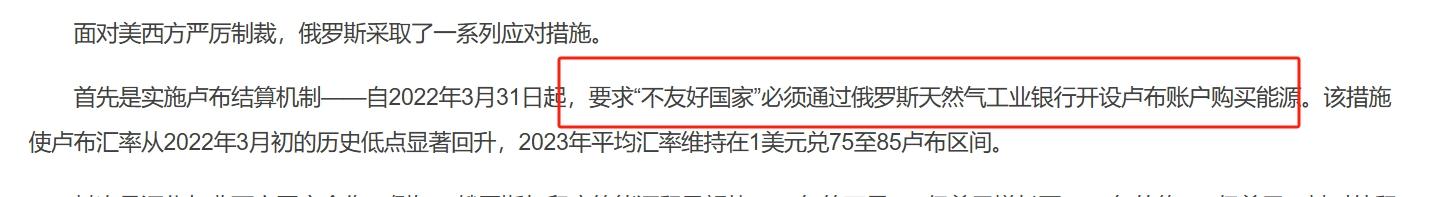 第三大殺招:殺雞儆猴。俄羅斯被美國剔出了SWIFT系統,沒法用美元結算,但是生意還得繼續做啊,俄羅斯就採用本幣結算,還規定“不友好國家”買油氣必須要用盧布。