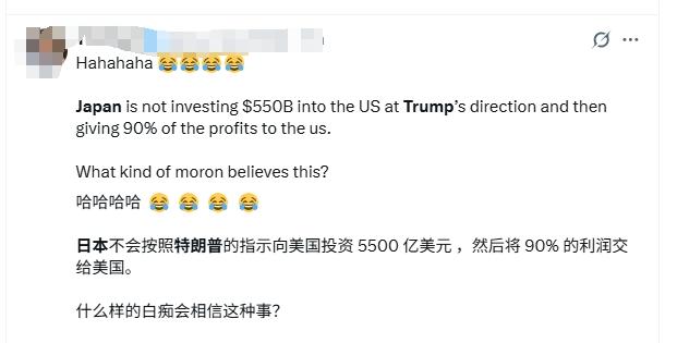 不過呢,大家都普遍認爲這5500億美元只是一個承諾,沒有什麼約束力,連投資領域、時間表都沒有確定,到時候日本完全可以拖上幾年,等到特朗普下臺了,這個承諾也就不作數了。