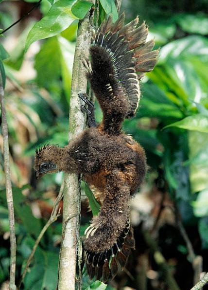 隨着幼鳥長大,大部分麝雉的翼爪會逐漸退化消失,與此同時,它們獨特氣味的消化系統成爲另一個 “臭名遠揚”的特徵(參考文獻[1])。