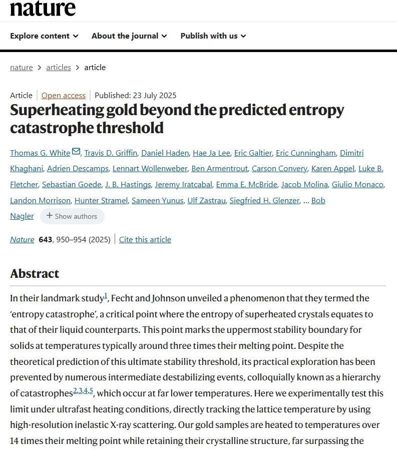 White, T.G., Griffin, T.D., Haden, D. et al. Superheating gold beyond the predicted entropy catastrophe threshold. Nature (2025). https://doi.org/10.1038/s41586-025-09253-y