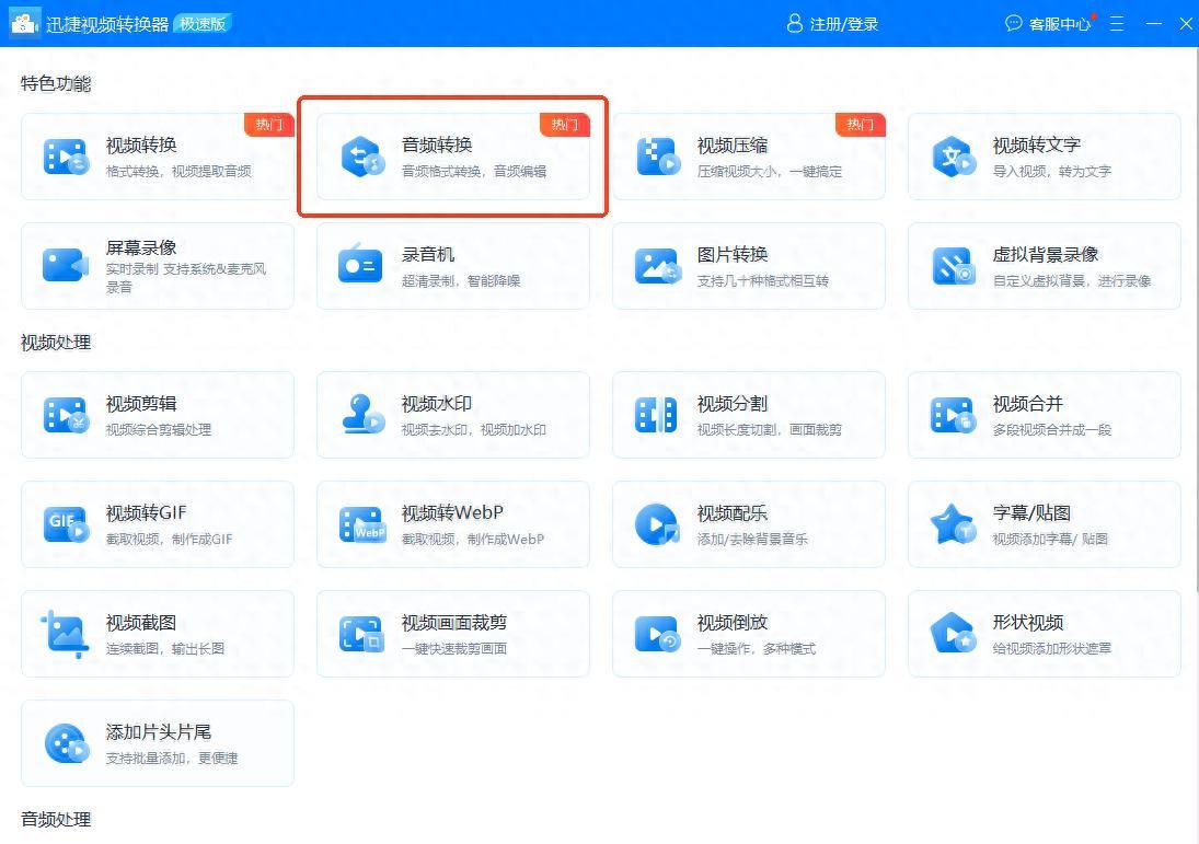 打開軟件,在首頁找到【音頻轉換】,導入多首需要轉換的歌曲。