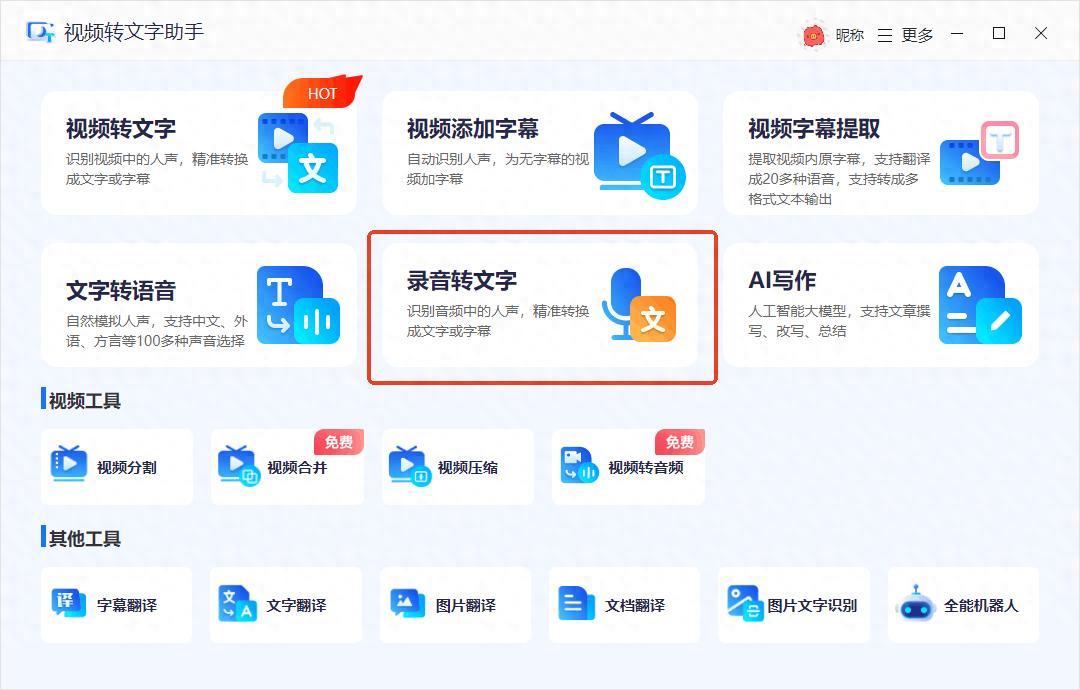 打開軟件,在首頁找到【錄音轉文字】。