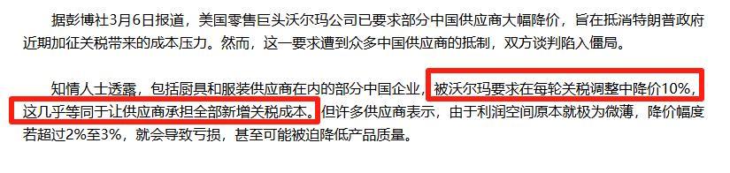 按道理,關稅是由美國買家承擔的,但是你別忘記了,當時美國跟咱們打關稅戰的時候,國家約談沃爾瑪等企業,原因就是他們要求中國供應商大幅降價,把關稅負擔轉嫁給中國供應商和消費者。中國企業背後有國家撐腰,歐盟企業背後可沒有,美國加徵關稅的負擔,可能會轉嫁給歐盟企業和消費者,歐盟日子更難過。
