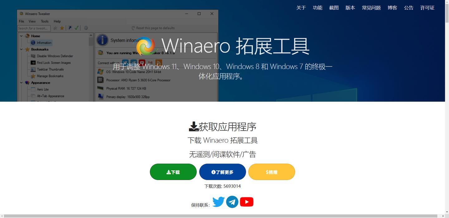 一款高級註冊表修改工具,支持調整外觀、功能、隱私及性能優化。它的功能也很多,可以用來修改開始菜單樣式、禁用 Windows 更新、關閉 telemetry 數據收集以及修復系統功能異常,讓你的系統優化更安全。