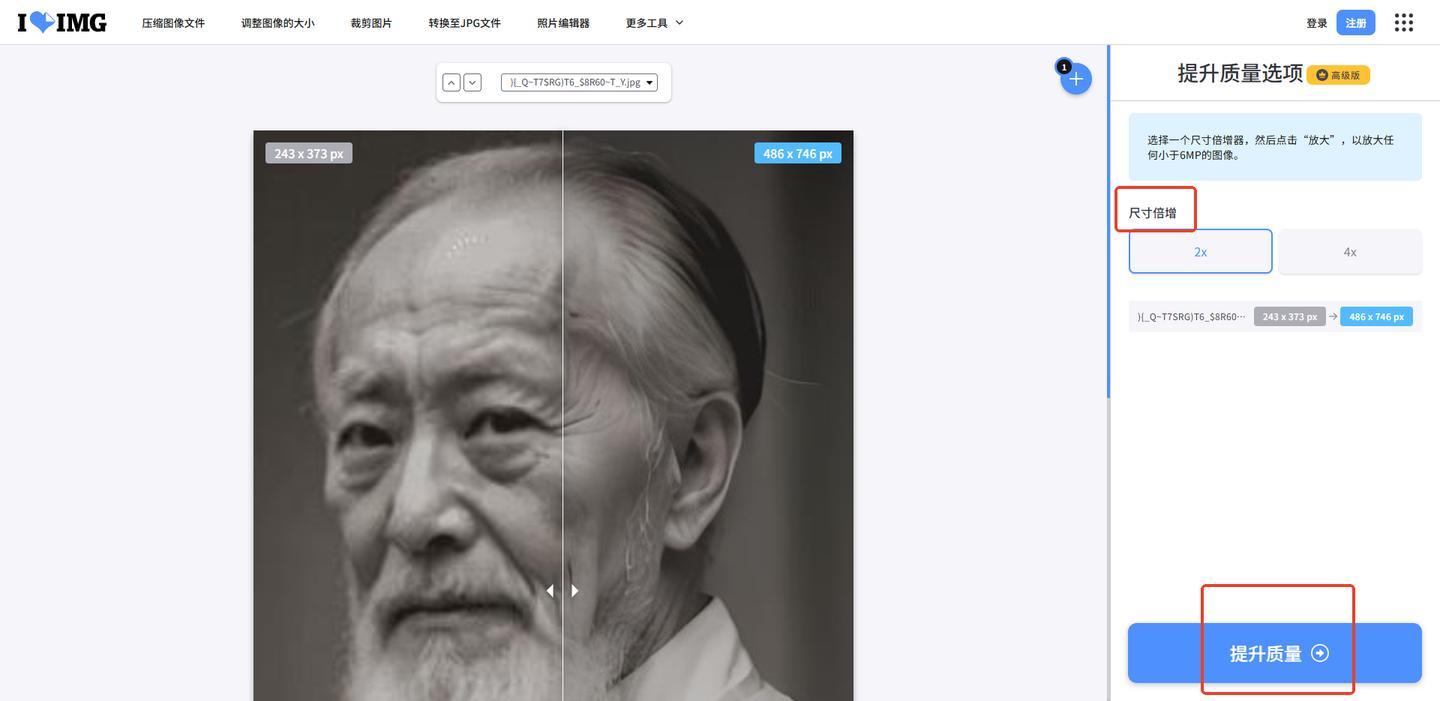 我們可以用【提升圖片質量】功能提高圖片的清晰度,操作簡單,只需要在首頁找到對應的功能,導入圖片,網站就會自動修復並展示前後對比效果,還支持對圖片進行2倍至4倍高清放大,滿足不同場景需求。