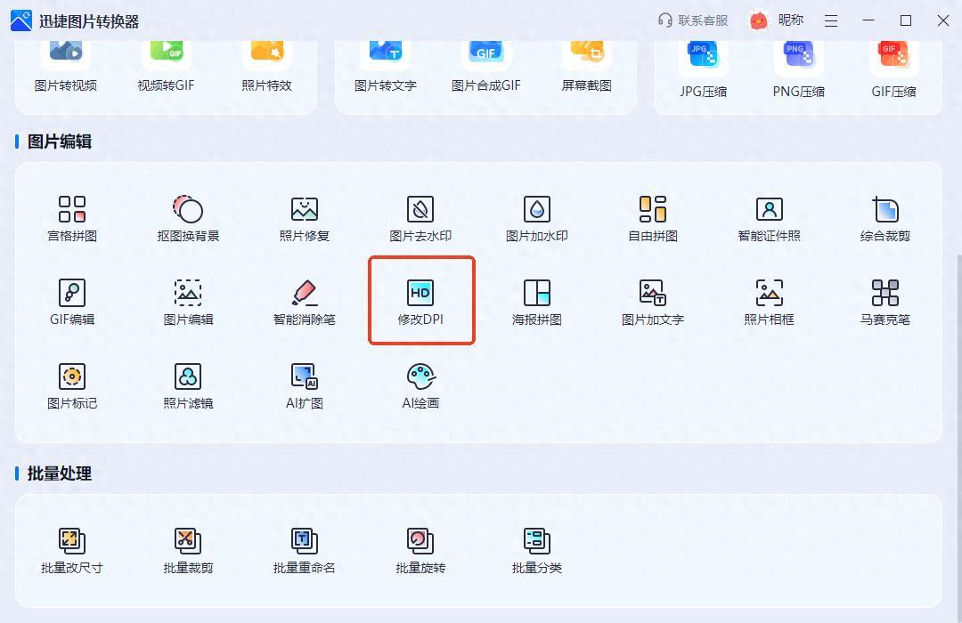 打開軟件,在【圖片編輯】中找到【修改dpi】,導入多張需要修改的圖片。