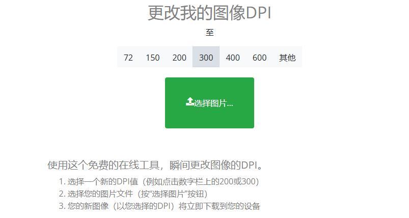一個在線的圖像處理網站,網站界面乾淨簡潔,可以自定義設置圖片的dpi,將上傳的圖片設置成印刷領域的高標準分辨率的300dpi,操作也不難,只需要選擇需要的圖像dpi數值,添加圖像之後,網站就會將圖片的dpi設置成該數值並自動下載修改後的圖片。