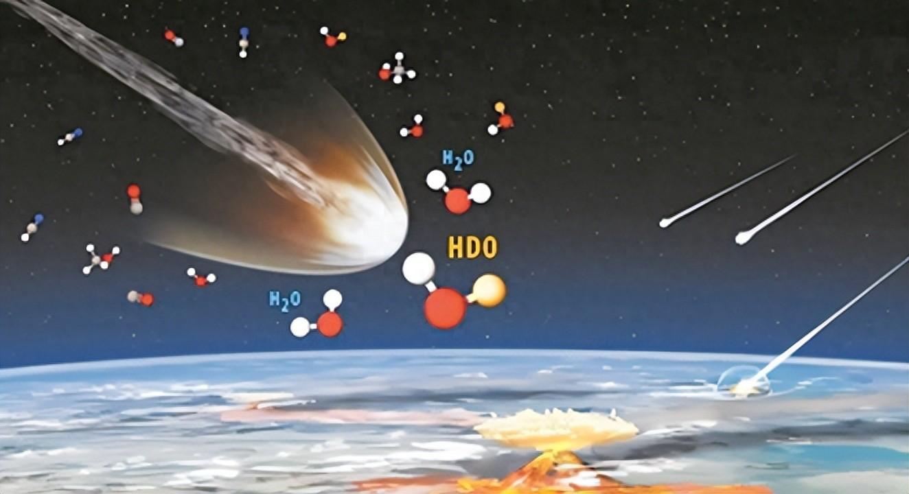 科學追蹤水的來源,靠的是一個並不直觀卻異常好用的線索——氘氫比。氫是宇宙裏最輕的元素,它的“大體重”同位素叫氘。由氘參與形成的水分子被稱爲“重水”,常以 HDO 的形式被識別。溫度、密度、化學反應路徑不同,都會讓水在形成時“摻”進不一樣比例的氘,就像在一鍋清湯裏滴入不同顏色的墨水,最終呈現各自穩定的色調。於是,氘氫比就成了一枚分子層面的“身份證”——地球海水有自己的標準數值,彗星、小行星、星際雲團的氘氫比也各有特徵。把它們一一比對,就可能追溯出海洋的身世。