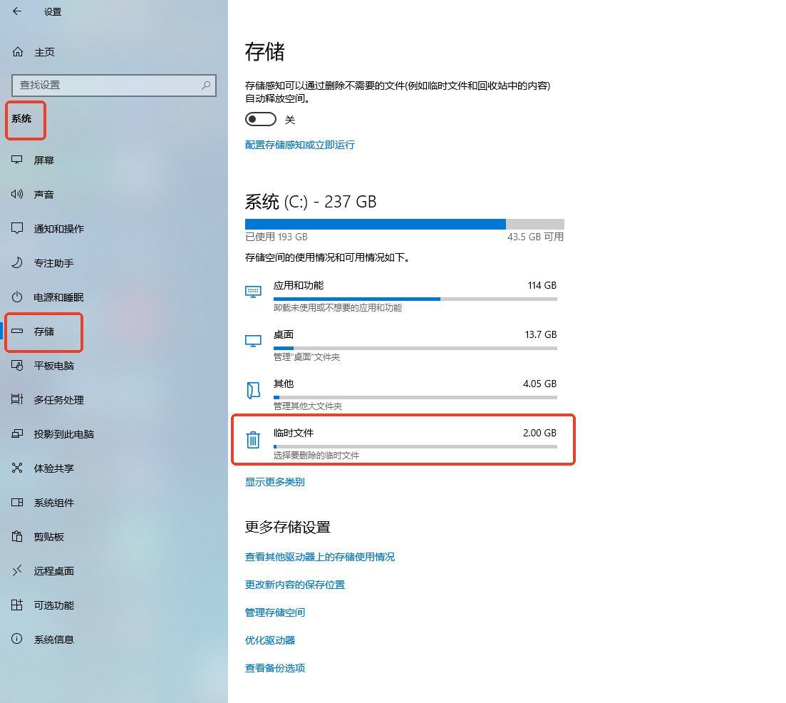 在設置中找到【系統】,點擊【存儲】中的【臨時文件】,刪除不需要的文件即可快速釋放內存。