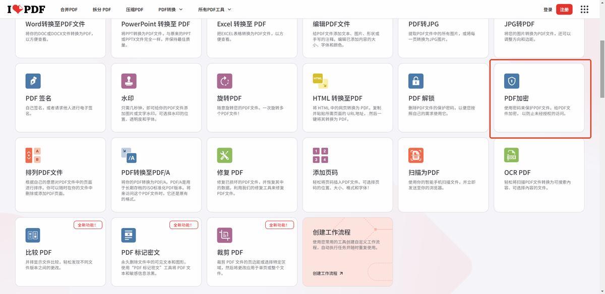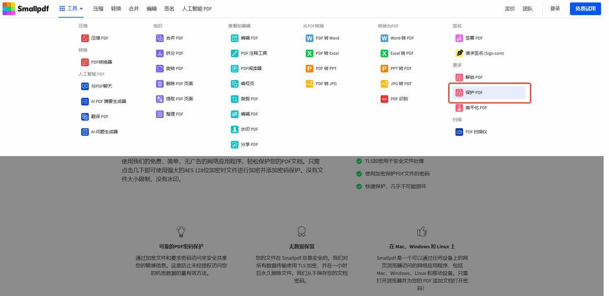 一個功能很多的在線PDF處理平臺,擁有多種PDF工具,支持爲PDF加密,它支持批量處理多個文件,一次性完成加密任務。