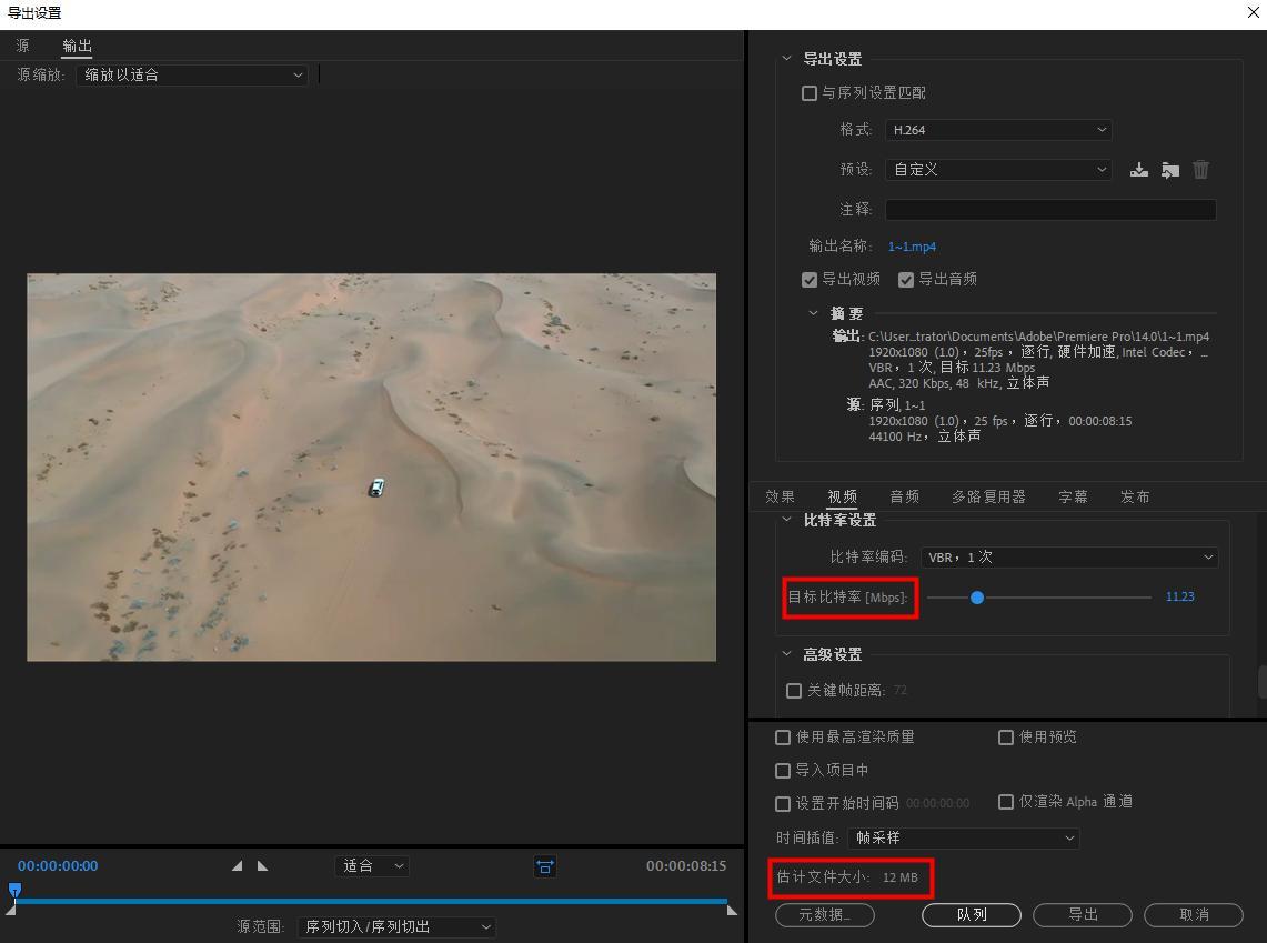 一款專業的視頻編輯軟件,擁有很多的視頻處理功能,包括視頻壓縮、剪輯、加字幕等等,操作也不難,在導出設置中,移動【目標比特率】,在移動的同時下方就會出現對應的文件大小,最後導出視頻即可。