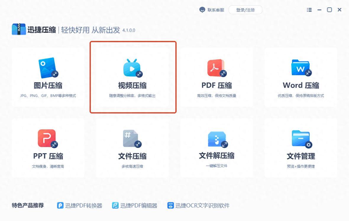 在首頁找到【視頻壓縮】,然後點擊【添加文件】或者【添加文件夾】導入需要壓縮的視頻文件。