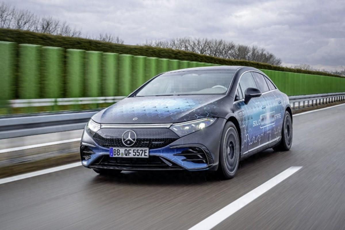 日前,梅賽德斯-奔馳宣佈,搭載全新固態電池的測試車已啓動道路試驗。該款固態電池能量密度高達450wh/kg,能夠使純電EQS測試車的續航里程提升25%,單次充電即可行駛1000km。