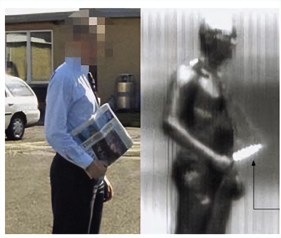 太赫茲視角下的持刀人,正常視角無法發現報紙中的刀具。