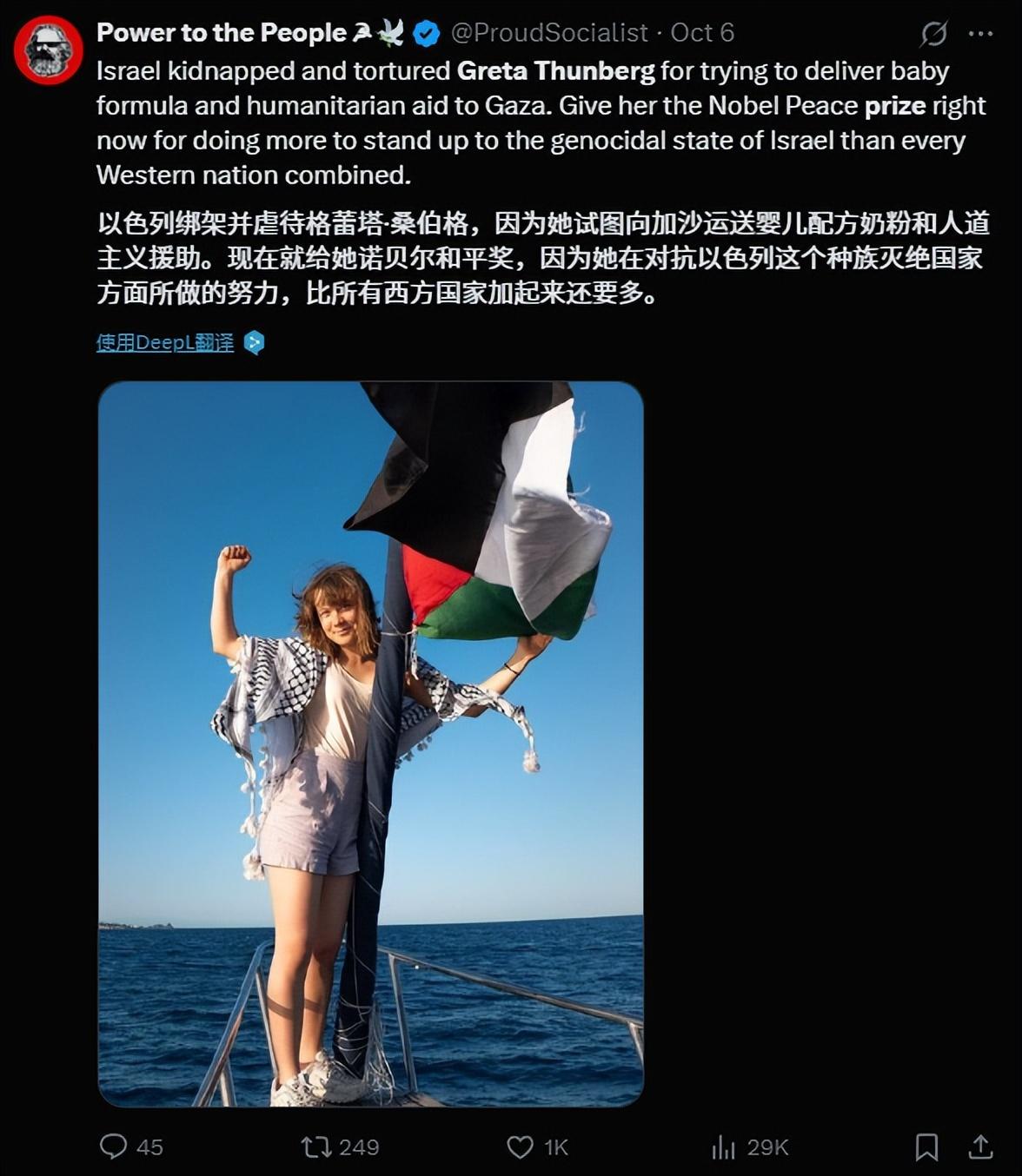 特朗普破防了!環保少女成諾獎最大競爭者,拿命支援加沙