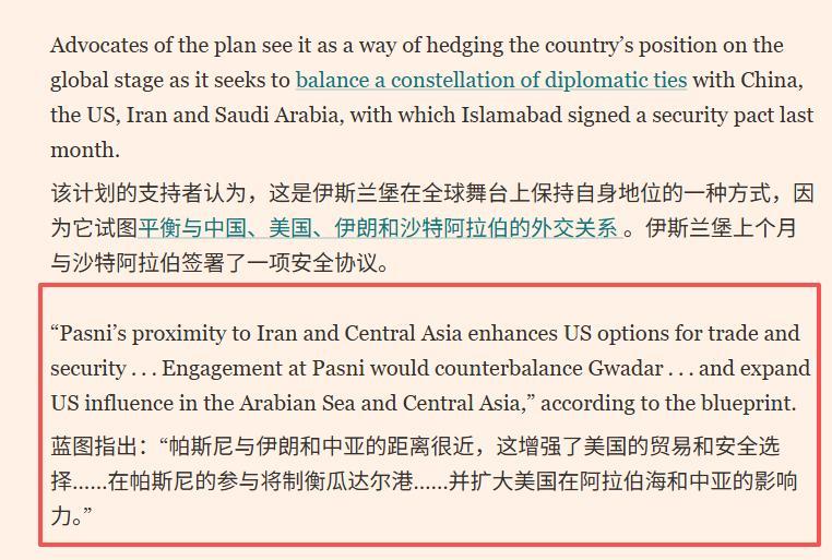 帕斯尼港距離霍爾木茲海峽非常近,同時該港口還配套一個新鐵路,新鐵路將連接巴基斯坦內陸戰略礦產的礦區,能爲美國軍工提供重要供應鏈。