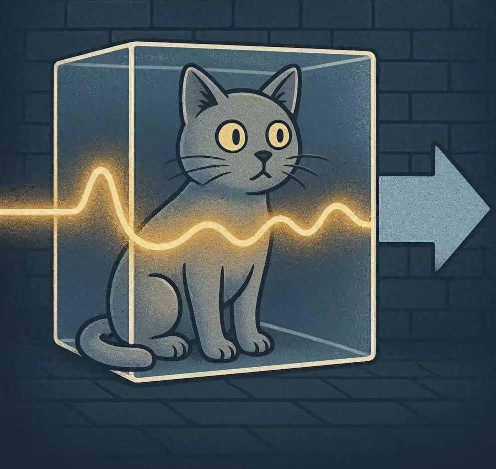 量子隧穿現象,說明電路處於電壓“爲0”和“不爲0”的兩種狀態之疊加態,它們按照一定的概率互相轉換,如同“薛定諤的貓”。