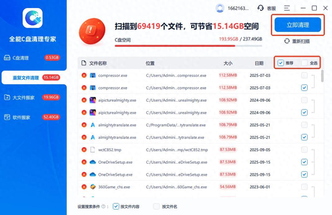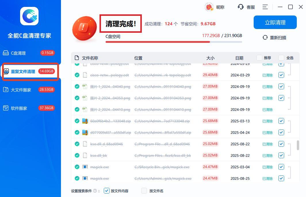 1、通過『全能C盤清理專家』查找重複文件