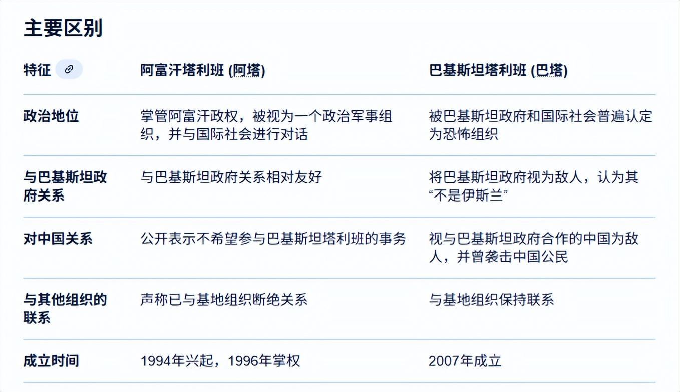 首先,巴基斯坦和阿富汗打起來,原因就是巴基斯坦塔利班,沒錯,它跟阿富汗塔利班有淵源,當年阿富汗戰爭的時候,爲了躲避美軍,塔利班殘餘勢力躲在了阿富汗和巴基斯坦邊境地區,在這個過程中,由於政治訴求和鬥爭手段不同,分裂成了兩個塔利班,巴塔和阿塔,二者被視爲兩個不同的組織。