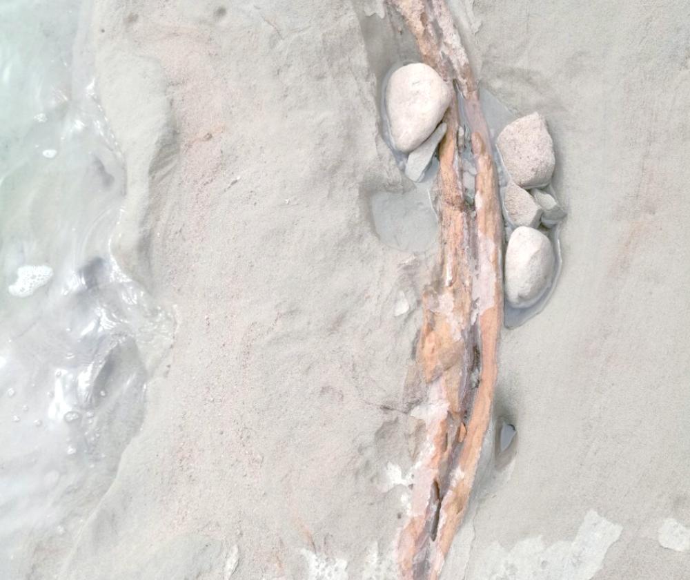 在數百萬年前,泥沙聚合在一起變成了岩石,將這些樹枝包裹在其中。
